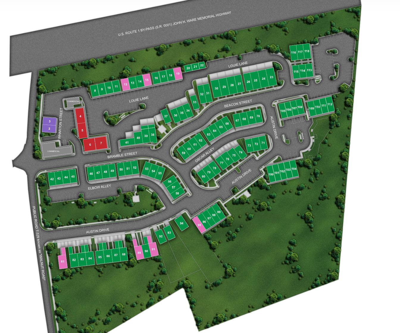 The Sparrow units are located in lots 95-108 and include two lower units, and a dual level unit.